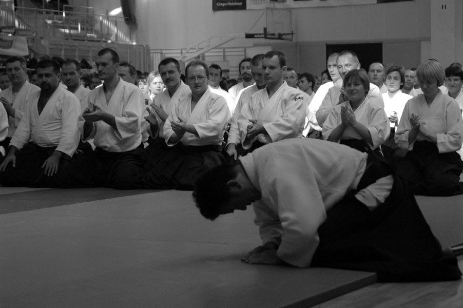 Tym razem udało się zmobilizować całkiem liczną ekipę i w sile około trzydziestu osób wybraliśmy się do Warszawy. Wyjątkowo wcześnie dotarliśmy do dojo i po przebraniu się byliśmy już na macie. A tu tłok ogromny. Więcej osób widziałem jedynie ponad rok temu w Mulheim, gdzie odbywał się staż jubileuszowy Katsuaki Asai sensei i Niemieckiej Federacji Aikido. Zatem już od początku czuło się podniosłą atmosferę święta polskich aikidoków.