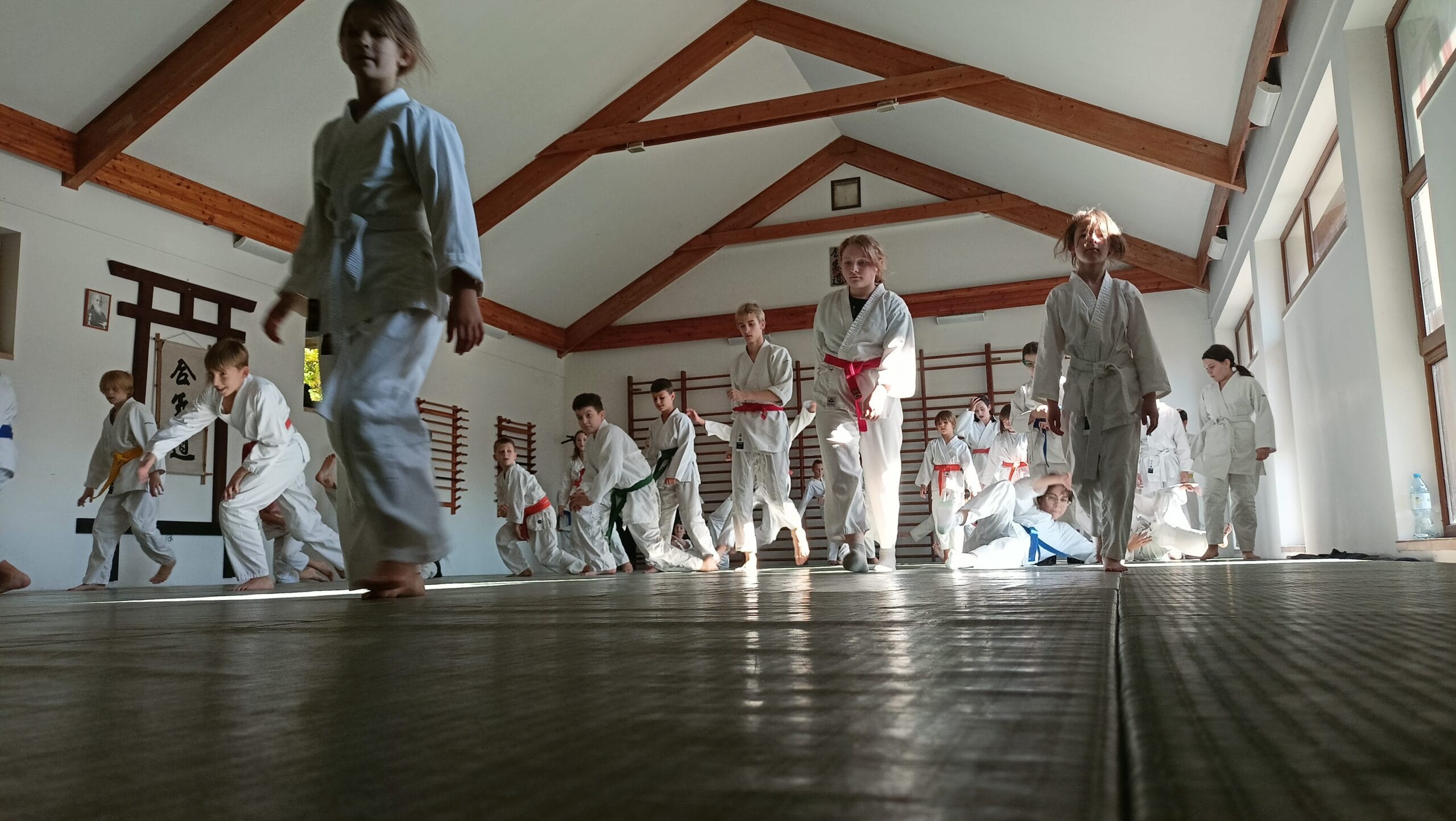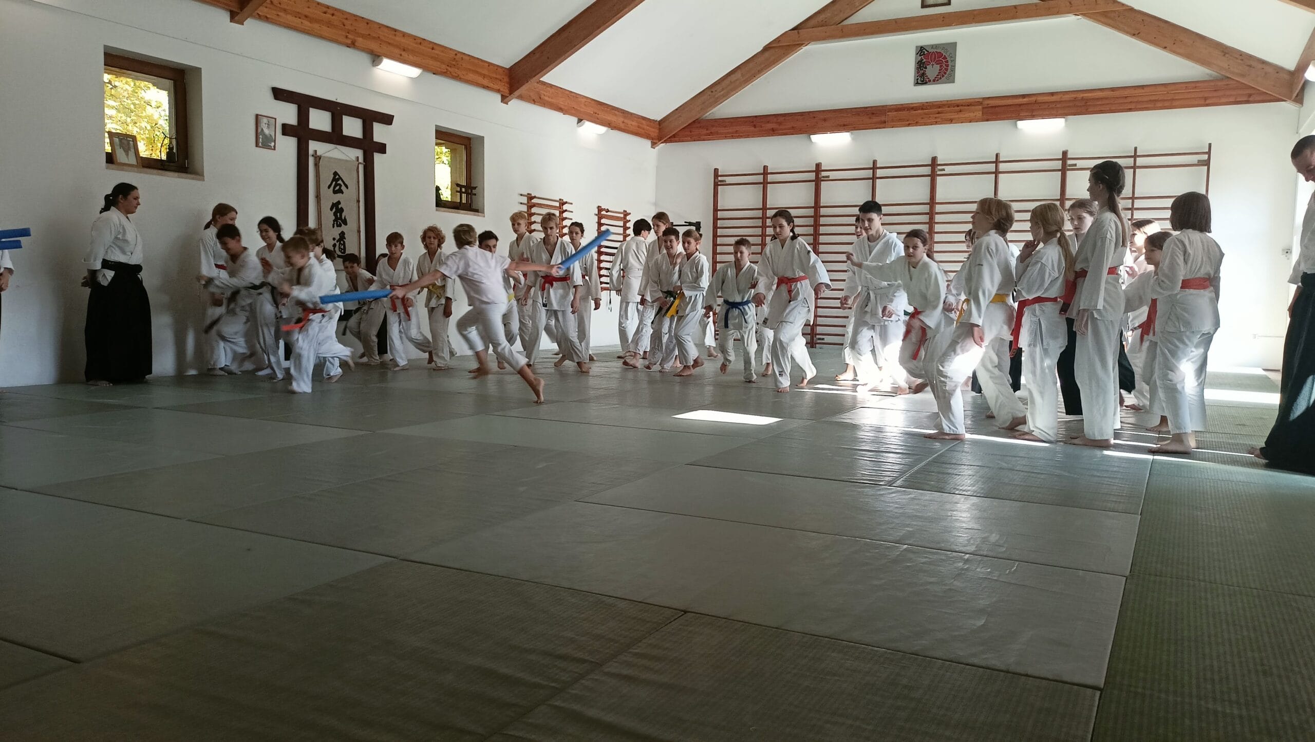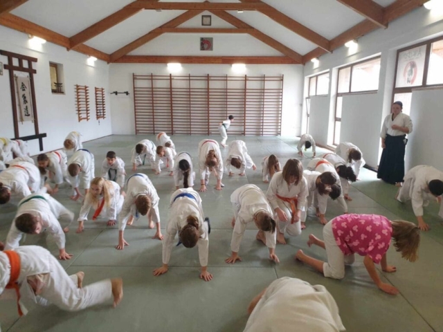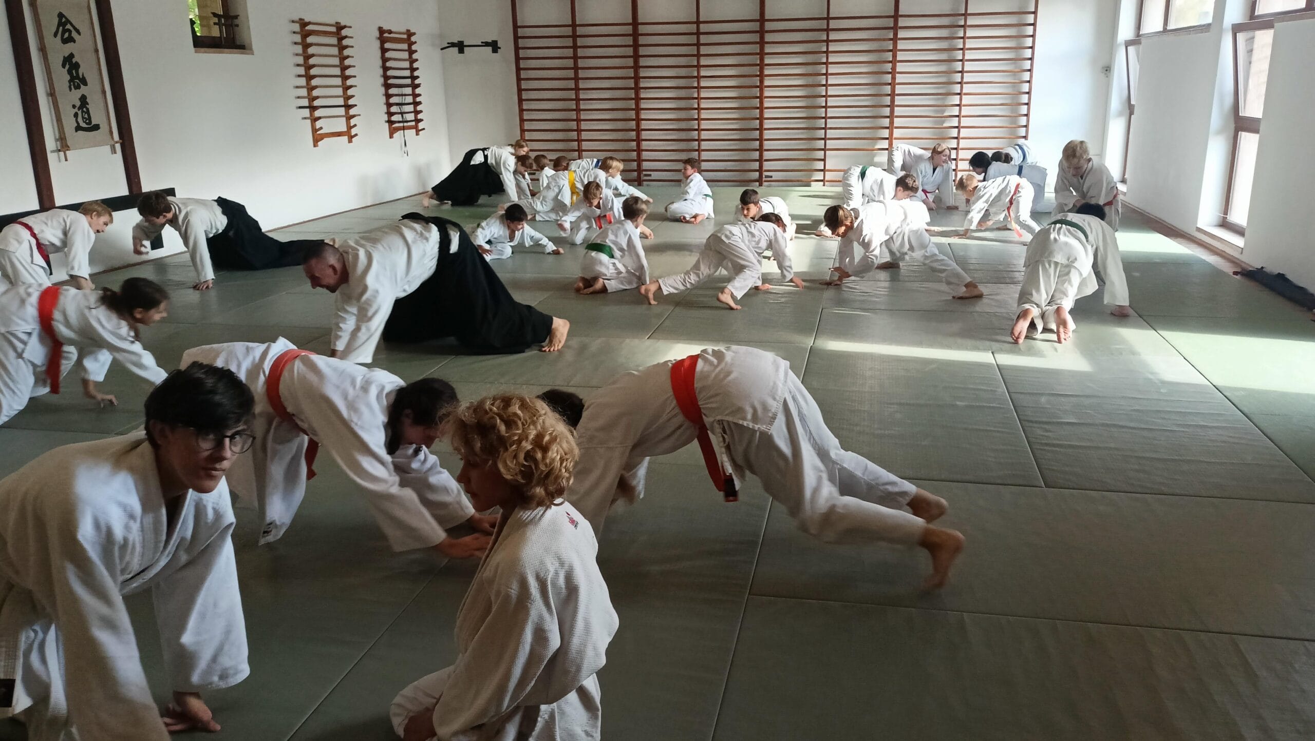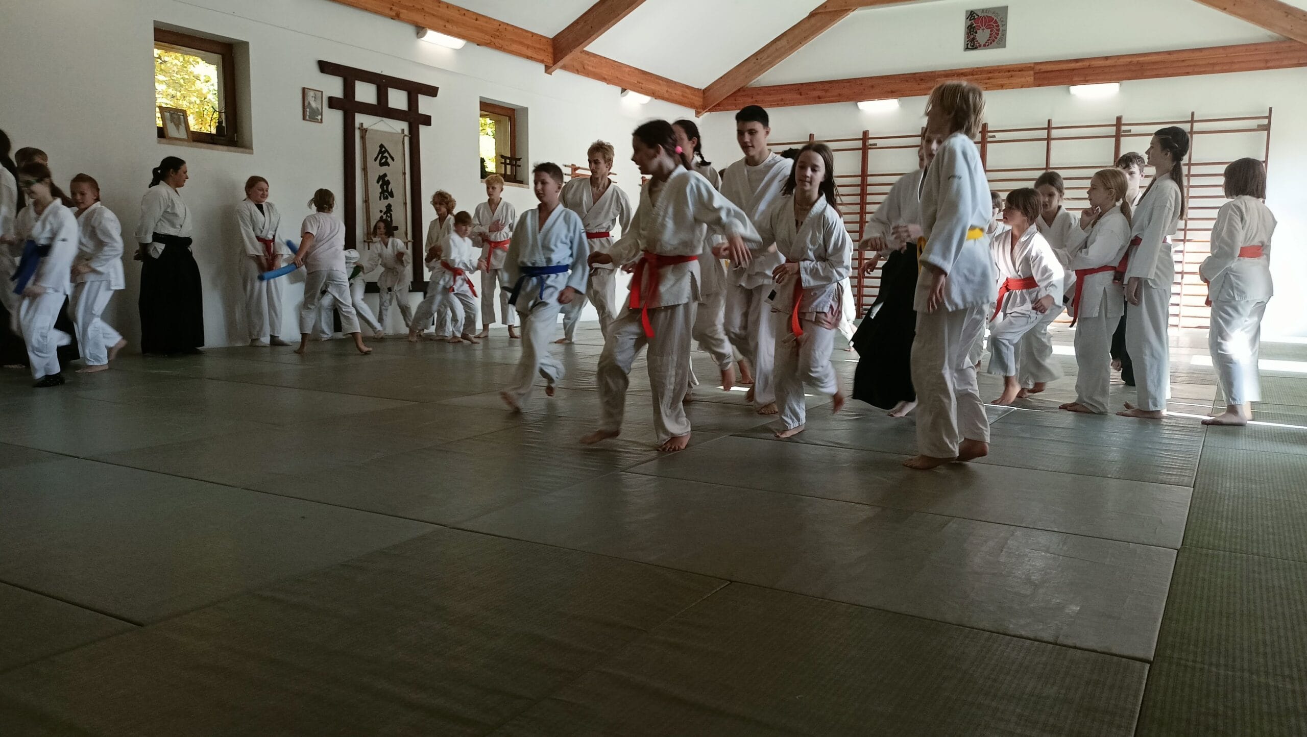I tak właśnie uczyniliśmy – wraz z grupą naszych starszych aiki-dzieciaków wybraliśmy się w październiku do Olsztyna na międzyklubowy staż aikido dla dzieci. Oprócz silnej ekipy z Shin Dojo na macie pojawili się również przedstawiciele Zanshindojo Elbląg, Tengoku Dojo oraz oczywiście organizatora, czyli Aikido Olsztyn. W sumie w zajęciach wzięło udział około 40 najmłodszych studentów aikido 🥋, więc energii w dojo było naprawdę sporo! ⚡