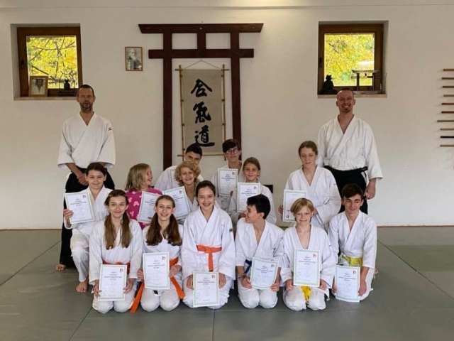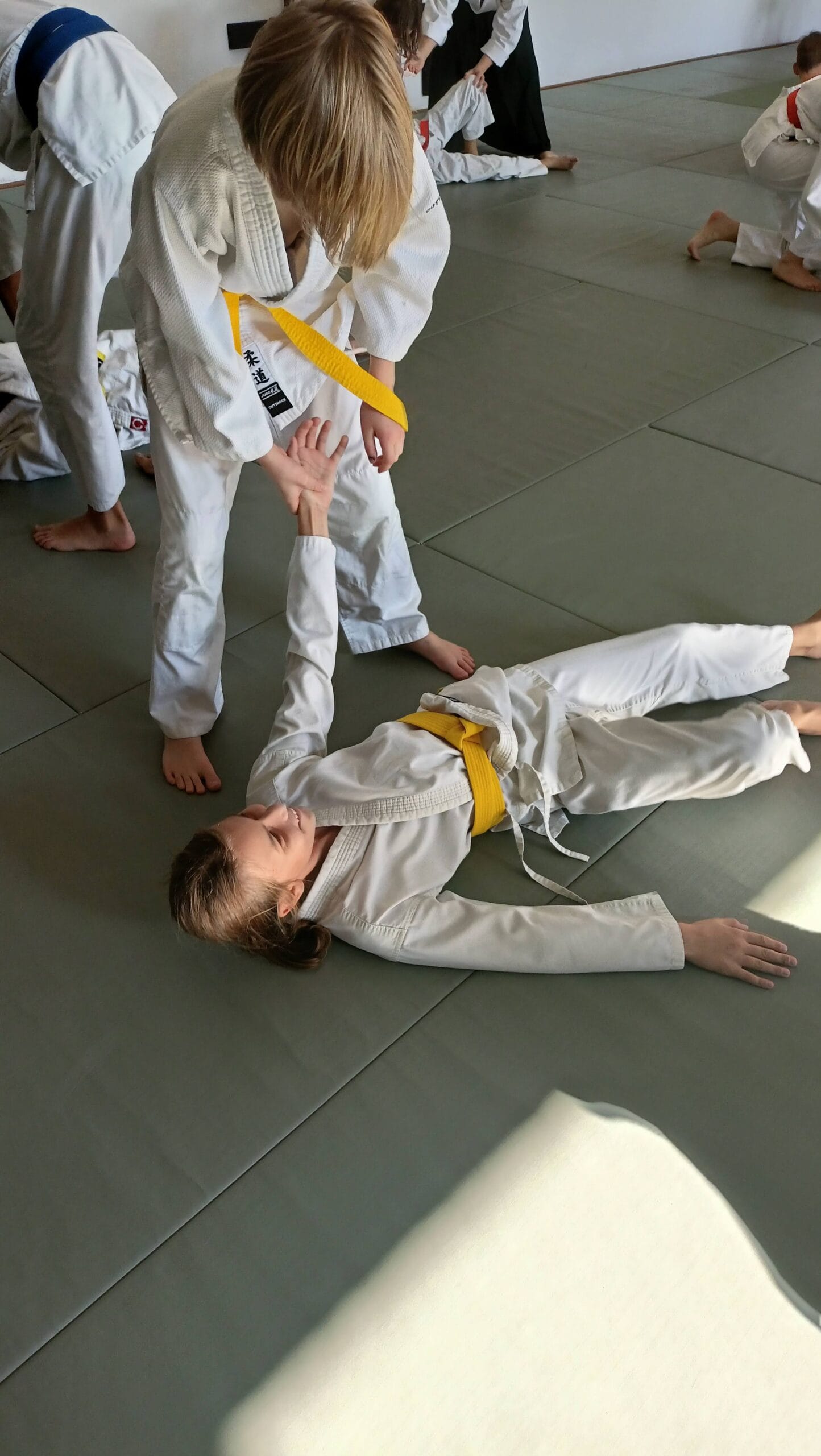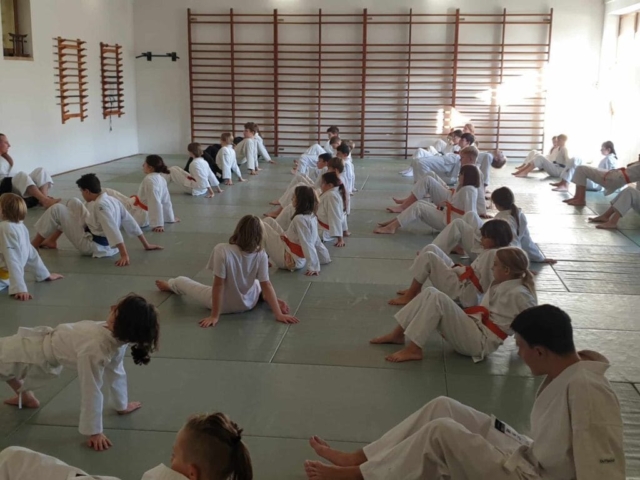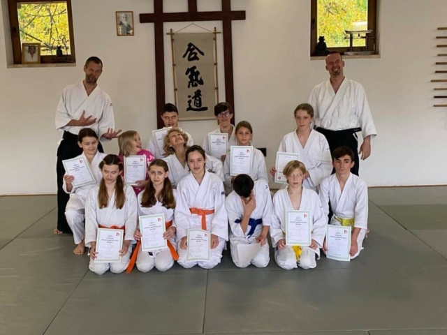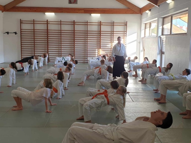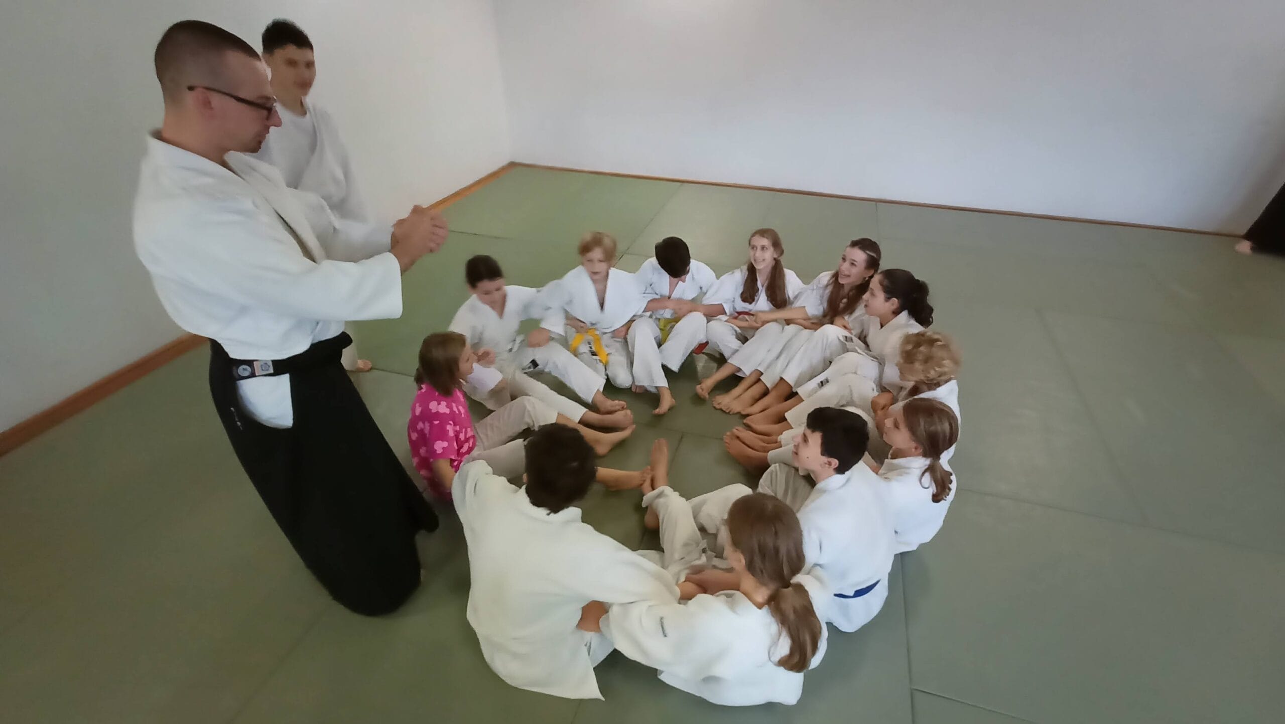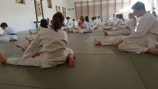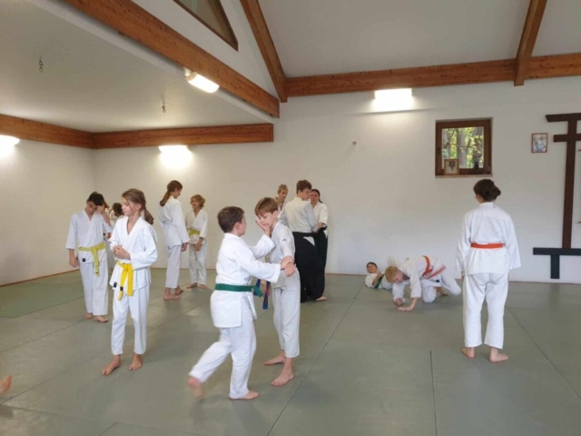 I tak właśnie uczyniliśmy – wraz z grupą naszych starszych aiki-dzieciaków wybraliśmy się w październiku do Olsztyna na międzyklubowy staż aikido dla dzieci. Oprócz silnej ekipy z Shin Dojo na macie pojawili się również przedstawiciele Zanshindojo Elbląg, Tengoku Dojo oraz oczywiście organizatora, czyli Aikido Olsztyn. W sumie w zajęciach wzięło udział około 40 najmłodszych studentów aikido 🥋, więc energii w dojo było naprawdę sporo! ⚡