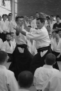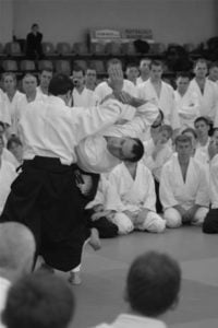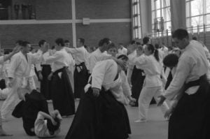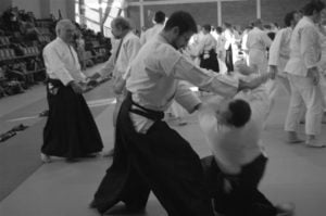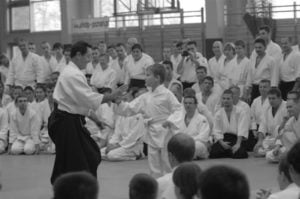 Skupmy się na tym co najważniejsze: na aikido. Jeśli chodzi o stronę techniczną, to kilka poprzednich staży z sensei Tissier wydawało mi się trudniejsze. Nie oznacza to jednak, że tym razem było łatwo. „Prostota” stażu polegała raczej na tym, że techniki były podstawowe – z bazowych, „dydaktycznych” powiedziałbym ataków. I tu jak zwykle owa prostota się kończyła. Często różnica między ruchem prawidłowym a błędnym była bardzo subtelna i trudno było ten jedyny, prawidłowy ruch odnaleźć oraz powtórzyć. I tym razem wyłapałem dla siebie kilka drobnych, ciekawych szczegółów technicznych, takich (zabrzmi zapewne śmiesznie) małych skarbów, które człowiek wywozi ze sobą z każdego niemal stażu i po które między innymi na staże jeździ.
