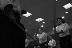 Jeżeli chodzi o trening z mieczem to chyba wszyscy wyłapali dla siebie to, co podkreślał sensei Tissier, a mianowicie: „nastawienie, miecz, ciało”. Interesujące były uwagi sensei dotyczące specyfiki aiki-ken w stosunku do treningu miecza niezwiązanego z aikido. Sensei Tissier przedstawił swój punkt widzenia na pracę mieczem w aiki-ken. Wyjaśnił, że w jego podejściu nastawienie na partnera, praca mieczem i praca całego ciała – „nastawienie, miecz, ciało”) – są ściśle związane z technikami oraz ruchem ciała w aikido i służą głównie rozwojowi technik aikido bez miecza. Kto na stażu był, temu wyjaśniać nie trzeba, bo przełożenie tego przekazu na ruch było u sensei Tissier bardzo widoczne. Kto zaś na stażu nie był, może wychwyci na następnym, o co w tym stwierdzeniu chodziło.