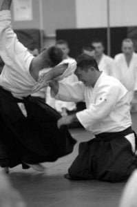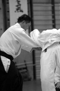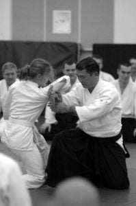 Praca z mieczem podczas treningu dla instruktorów wyraźnie w powiązaniu z aikido Chiba Sensei i Birankai (jak choćby ruch ushiro tenkan). Pojawiły się także techniki w hanmi-handachi waza. Nie będę rozpisywał się w szczegółach, ale po tym zdawkowym opisie, każdy zorientowany w temacie będzie sobie w stanie wyobrazić w jakiej „bajce” znaleźliśmy się w ten listopadowy weekend.