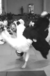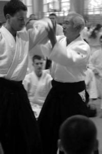 Trening popołudniowy był dość technicznie zróżnicowany. Podobnie jak poranny trening w niedzielę. Mnogość ataków, ciekawych wyjść z uchwytu, bolesne techniki wykonywane na stopie i w okolicach kostek partnera, ciągłe nawiązywanie do podstaw. Jednym słowem – perełki! To co mnie bardzo się podobało, poza aspektem czysto technicznym, to PRZEKAZ. Trudno ująć to słowami, ale Isoyama sensei był bardzo przekonywujący, a to co mówił znajdowało odzwierciedlenie nie tylko w technikach, ale w całej jego osobowości. Myślę, że ta właśnie silna osobowość Hiroshi Isoyamy sensei, jego charakter, trzymanie się zasad, których naucza, a jednocześnie otwartość i duża tolerancja na „inność” nas europejczyków, wyważone poczucie humoru, pasja, to wszystko razem jest tym co robi na mnie największe wrażenie i przyciągało chyba każdego do osoby Mistrza. Myślę, że trochę prawdziwego ducha budo spłynęło na nas i oby jak najdłużej w nas pozostało.