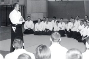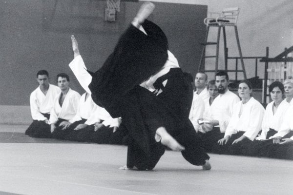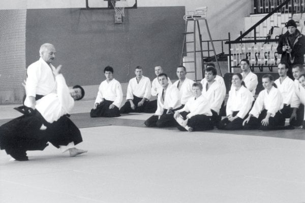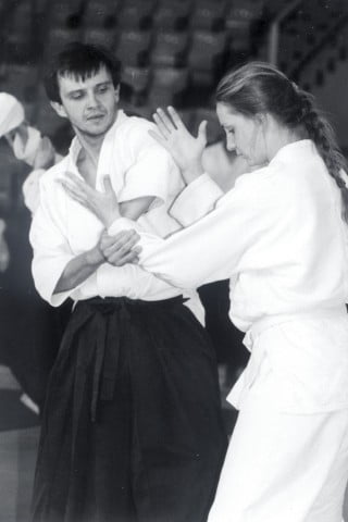 Wracając do aikido, które było przecież głównym celem naszej podróży do Chojnic, trzeba wspomnieć o osobach prowadzących treningi. Postać sensei Mariana Wiśniewskiego jest wszystkim osobom związanym z Shin Dojo dobrze znana i nie trzeba jej przedstawiać. Natomiast zdecydowana większość z nas nie miała dotąd okazji ćwiczyć pod okiem sensei Jerzego Sapieli. Sensei Sapiela na co dzień prowadzi treningi w Szklarskiej Porębie. Z aikido jest związany, podobnie jak sensei Wiśniewski, od samego początku istnienia tej sztuki walki w Polsce. Należy wspomnieć, że pasja ta związana była w owym czasie ze sporym poświęceniem (cotygodniowe podróże ze Szklarskiej Poręby do Szczecina na treningi pod okiem Mariana Osińskiego).