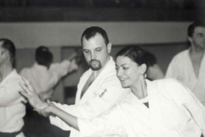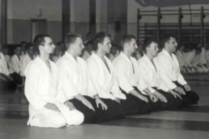 Trening rozpoczęła charakterystyczna rozgrzewka z ćwiczeniami oddechowymi i tori fune, momentami nieco zabawna, gdyż „ręce do góry” brzmi w języku niemieckim dość specyficznie. Sensei zwracał uwagę na równoległe i osiowe ustawianie stóp podczas ćwiczeń. Dalej było już nieco inaczej niż zwykle. W poprzednich latach ćwiczyliśmy kilka lub kilkanaście wersji jednej techniki, np. ikkyo ura czy kaiten nage. Tym razem technik było zdecydowanie więcej i to zarówno wykonywanych w rozbudowanych formach jak i krótkich, wręcz ascetycznych wersji, miedzy innymi kotegaeshi. Każda sesja treningowa kończyła się wykonywaniem przećwiczonych technik „na środku” maty przez uczestników stażu wg stopnia zaawansowania. W tym właśnie momencie wiosna doskwierała najbardziej, a ściślej ostre słońce w połączeniu z ciągle działającym na sali ogrzewaniem. Należy zaznaczyć, że ćwiczyliśmy w żywym tempie, mając już za sobą ponad dwie godziny treningu. Po zakończeniu sesji pozwoliło to docenić wyjątkowy smak najzwyklejszej wody.