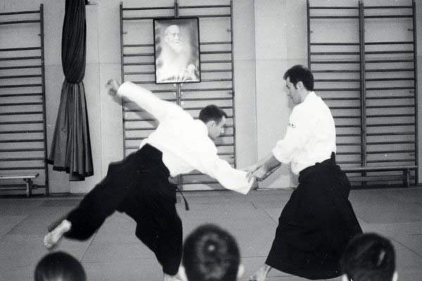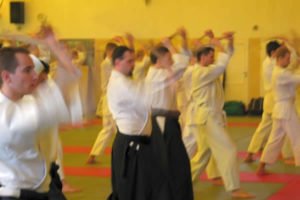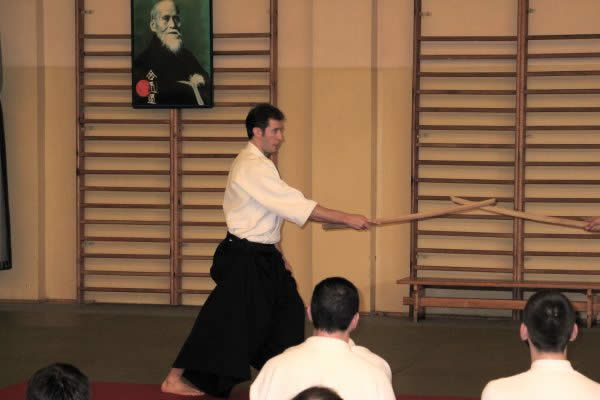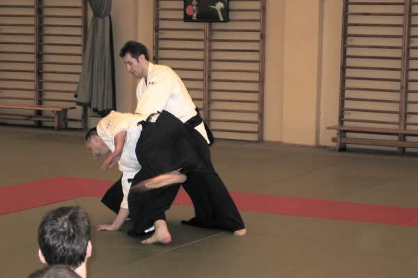 Nie będę szeroko rozpisywał się o technikach. Były to raczej techniki podstawowe wykonywane również z podstawowych ataków, a to z prostej przyczyny – na macie przeważały osoby początkujące. Wykonywaliśmy między innymi irimi nage, kotegaeshi, shiho nage i tenchinage z ataku katatedori oraz yokomenuchi. Dzięki ciekawemu i angażującemu sposobowi prowadzenia treningu wiele technik mogliśmy odkryć na nowo i niejako od nowa się ich uczyć. Bardzo istotna okazała się praca uke. Praca polegająca nie na biernym poddawaniu się ruchowi i wykonaniu padu, czy też odwrotnie – usilnym blokowaniu techniki. Praca w sensie bycia aktywnym i czujnym, praca polegająca na ciągłym kontakcie z tori, byciu zaangażowanym w technikę na każdym jej etapie na równi z tori. Jedna z ważniejszych rzeczy, jakie sensei Pascal nam przekazał, to idea, że tylko dobry uke może być dobrym aikidoką. Wszak aikido to harmonia: nie ma uke bez tori i tori bez uke.