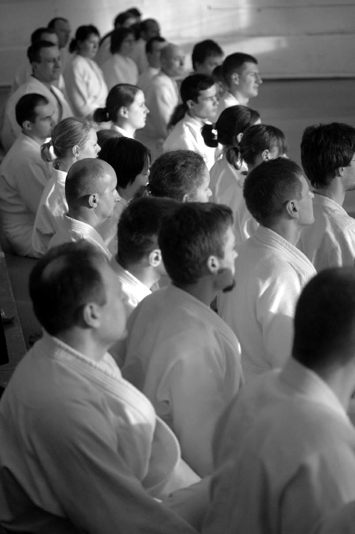 Wyjątkowo, z uwagi na odbywające się na sali „Olimpii” zawody judo, staż miał miejsce w naszym dojo, przy ulicy Cichej. Należało się zatem spodziewać znacznego tłoku na macie. Było to oczywiście niejakie utrudnienie, ale i tak wszyscy uczestnicy starali się pracować na maksymalnych obrotach. Tym razem pojawili się także goście zagraniczni, wśród których był dobrze nam już znany sensei Jean Marie Milleville. Wszystkim uczestnikom stażu, naszym sensei’om, oraz oczywiście sensei Pascalowi Guillemin serdeczne domo arigatou gozaimashita! A teraz nic, tylko brać się dalej do pracy…