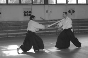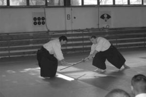 Kolejny trening aikido rozpoczął się w suwari waza, co źle wróżyło moim ostatnio mocno protestującym, kolanom. Było to jednak tylko wprowadzenie do innych technik a raczej do pracy nad podstawowymi zasadami. Ponownie ciekawy trening, dobrze poukładany, przemyślany i dobry dydaktycznie. Yokomen uchi jiu waza, ostatni wysiłek, ostatnie krople potu i już po stażu.