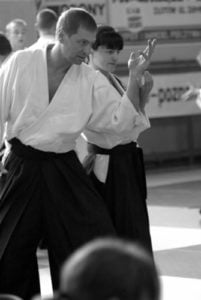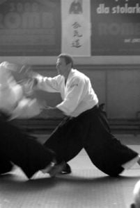 Na macie sensei Pomianowski potraktował temat aikido odmiennie i było nieco elementów, których na co dzień nie praktykujemy. Mam tu na myśli szczególnie wykończenia technik zaczerpnięte między innymi z brazylijskiego jiujitsu. Przyznam, że ten mariaż wypadł całkiem ciekawie.