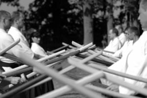 Rankiem drugiego i trzeciego dnia odbyły się treningi z jo prowadzone przez Wojtka i Adama. Z uwagi na ograniczenia czasowe zajęliśmy się tylko (i aż) suburi, ale udało się przypomnieć sobie wszystkie podstawowe ruchy i uporządkować w głowie. Teraz nic, tylko systematycznie ćwiczyć…