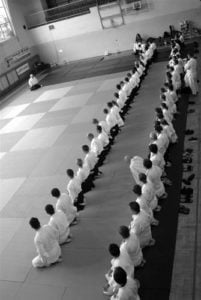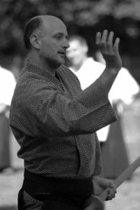 Inauguracyjny trening poprowadził sensei Pascal Norbelly. Nasz Gość spokojnie wprowadził nas w czekający nas tydzień ciężkiej pracy. Staraliśmy się zatem rozluźniać między innymi przy kokyuho z ataku katatedori. Początkowo robiliśmy to w klasycznej wersji, ale później doszło do tego ruchu „małe co nieco” tenkanów i pracy biodrami. Także podczas innych technik pracowaliśmy dość spokojnie tak, by stopniowo wybudzić organizm z wakacyjnego letargu. Trening jak zwykle inspirujący i ciekawy, sygnalizujący pewne zagadnienia techniczne, z którymi jeszcze podczas szkoły się zetkniemy.