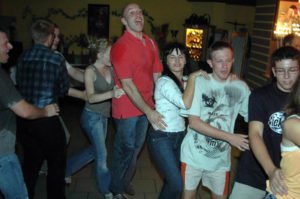 Szkoła Letnia….. Przez osiem dni, nie tylko trenujemy, ale przede wszystkim przebywamy w gronie wielu znajomych jak i nowopoznanych osób. Szkoła była licznie obsadzona, po raz kolejny przybyli nie tylko ludzie z wielu polskich ośrodków, ale także koledzy z Francji i Łotysze. Było sporo czasu na liczne rozmowy, huczną zabawę, tańce, dowcipkowanie, opowieści z krypty ;-), a wszystko to we wspaniałej, dobrej atmosferze. Szkoła Letnia zawsze była pod tym względem wyjątkowa i mimo, że w tym roku nie gościło nas już „Zacisze”, to tę tradycję znakomitej atmosfery udało się utrzymać. Przypomnijmy sobie choćby wieczory taneczne, bankiet i dyskotekę, a także ognisko zorganizowane dzięki uprzejmości i pomocy Lasów Państwowych i pana Janusza Grabowskiego. Pokazaliśmy, że potrafimy wspaniale się bawić, a podczas chóralnych śpiewów znikają nawet bariery językowe ;-).