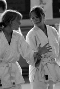 Szkoła Letnia to nie tylko aikido. Poza zajęciami na macie odbył się także kurs pierwszej pomocy. Poza tradycyjnymi uwagami i pokazami związanymi z tematem (sztuczne oddychanie, unieruchamianie złamanych kończyn, tamowanie krwotoków, pomoc przy innych urazach) część spotkania przeznaczyliśmy na luźną, ale bardzo interesującą rozmowę dotyczącą profilaktyki, jak i zdrowego trybu życia. Bardzo dużo niezwykle cennych spostrzeżeń i obserwacji wieloletniego praktyka, jakim jest pani „doktor Ania”. Kto nie był, niech żałuje, bo warto było posłuchać. No i przede wszystkim warto te wszystkie rady wcielić w życie…
