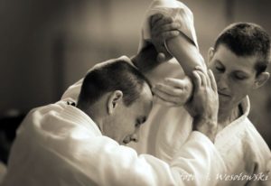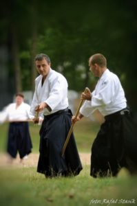A treningi poprowadzili w tym roku Sensei Pascal Norbelly (6. dan), Sensei Marian Wiśniewski (6. dan) oraz Sensei Adam i Wojtek (w sumie 10. dan), także przekrój technik mieliśmy całkiem spory. Dziękujemy wszystkim Sensei’om za kolejny „aiki-materiał” do przemyśleń i studiowania na macie – jak zwykle 😉 okazało się, że można te same techniki robić „niezwykle”.